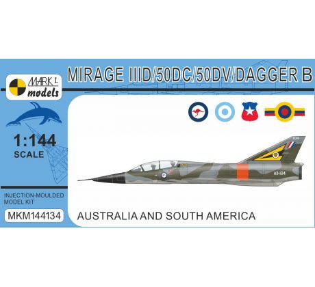 The Mirage III jet fighter was developed by the French Avions Marcel Dassault company and its prototype flew in 1956. Regarded as a versatile second-generation fighter, it was the first Western European aircraft to exceed Mach 2 in level flight. The two-seat Mirage IIID was a trainer version of the upgraded Mirage IIIE destined for export, while the Mirage 50D trainers were based on the Mirage 50 uprated and improved variant; 55 of the former and 6 of the latter (incl. 2 upgraded a/c) were produced. The Dagger B was an ex-Israeli Nesher T, itself an IAI-built derivative based on the Mirage IIIB airframe, fitted with simplified avionics; four a/c were delivered to Argentina in 1980.