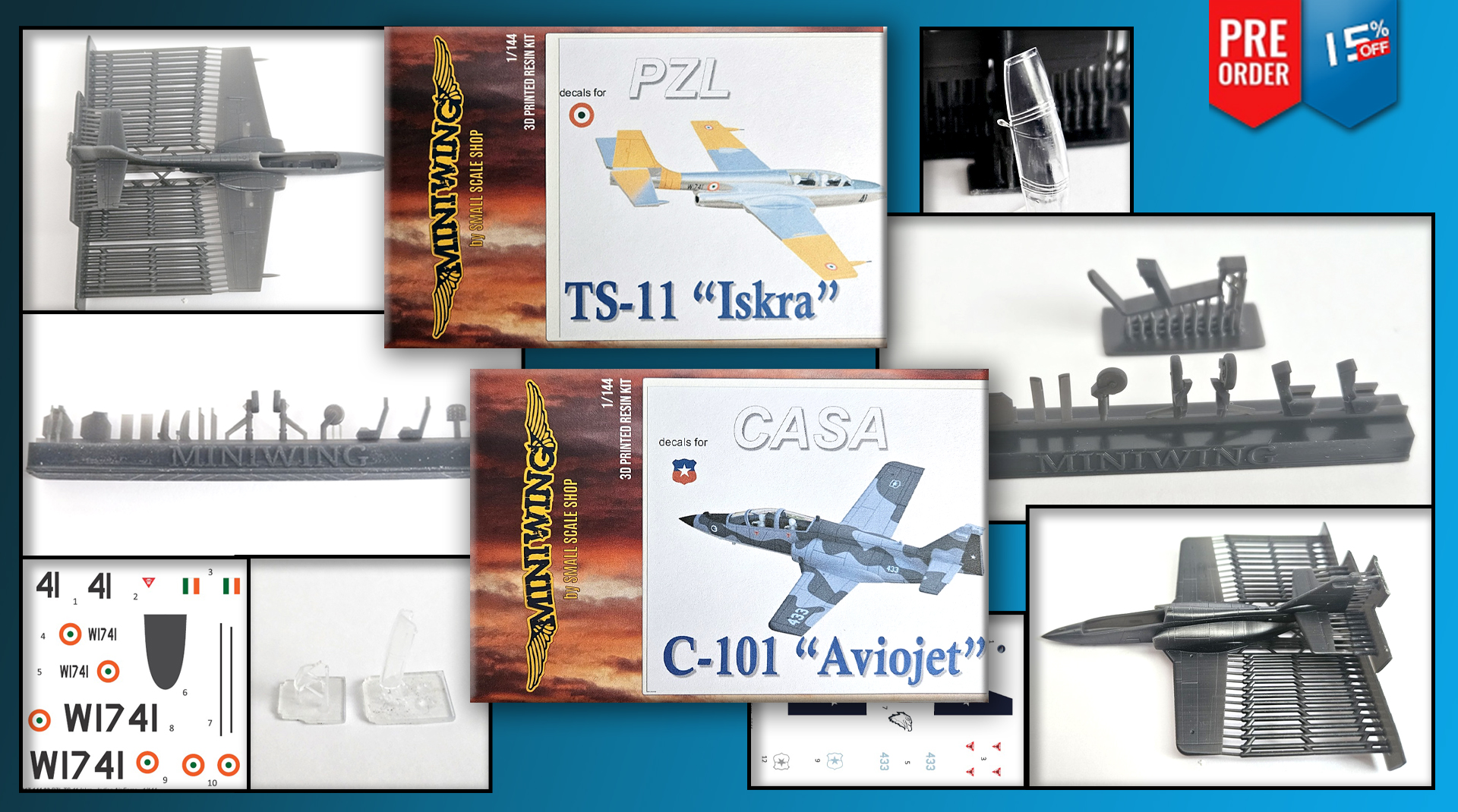 NOTE: these kits were re-designed and new masters were made. The cockpit canopies were 3D designed and made by injection moulding into a metal mould.