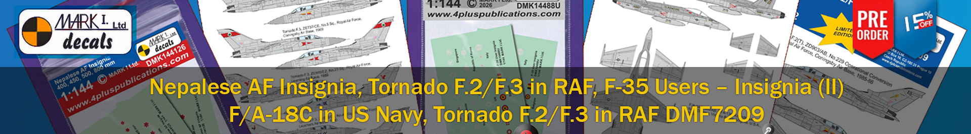 Decal sheets containing national insignia and/or tricolour stripes and/or serial numbers/letters in 1:144th scale. These decals are specifically designed for particular aircraft types and to match existing model kits.